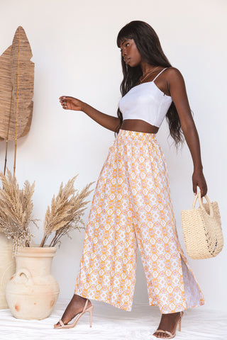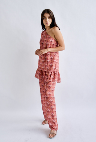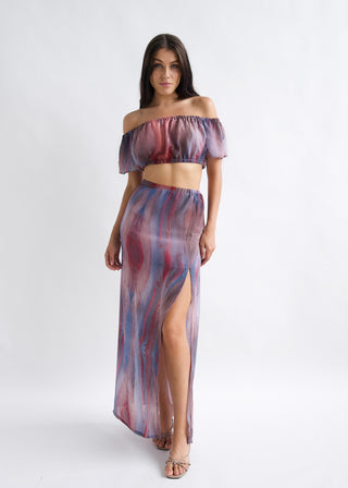 Pencil Skirt Printed Satin and Crop Top Set "Mandu"