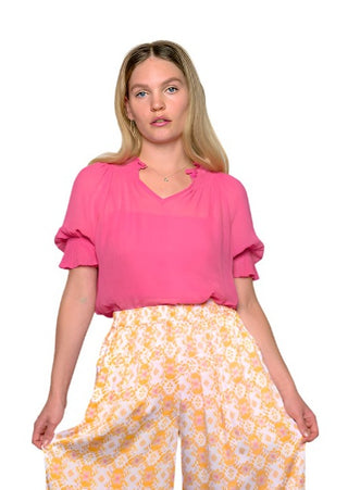 Hot Pink "Devotion" Georgette Top with Puffed Sleeves